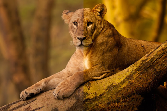 Clarity and vibrance illustration (Lioness, Nakuru NP, Kenya) |